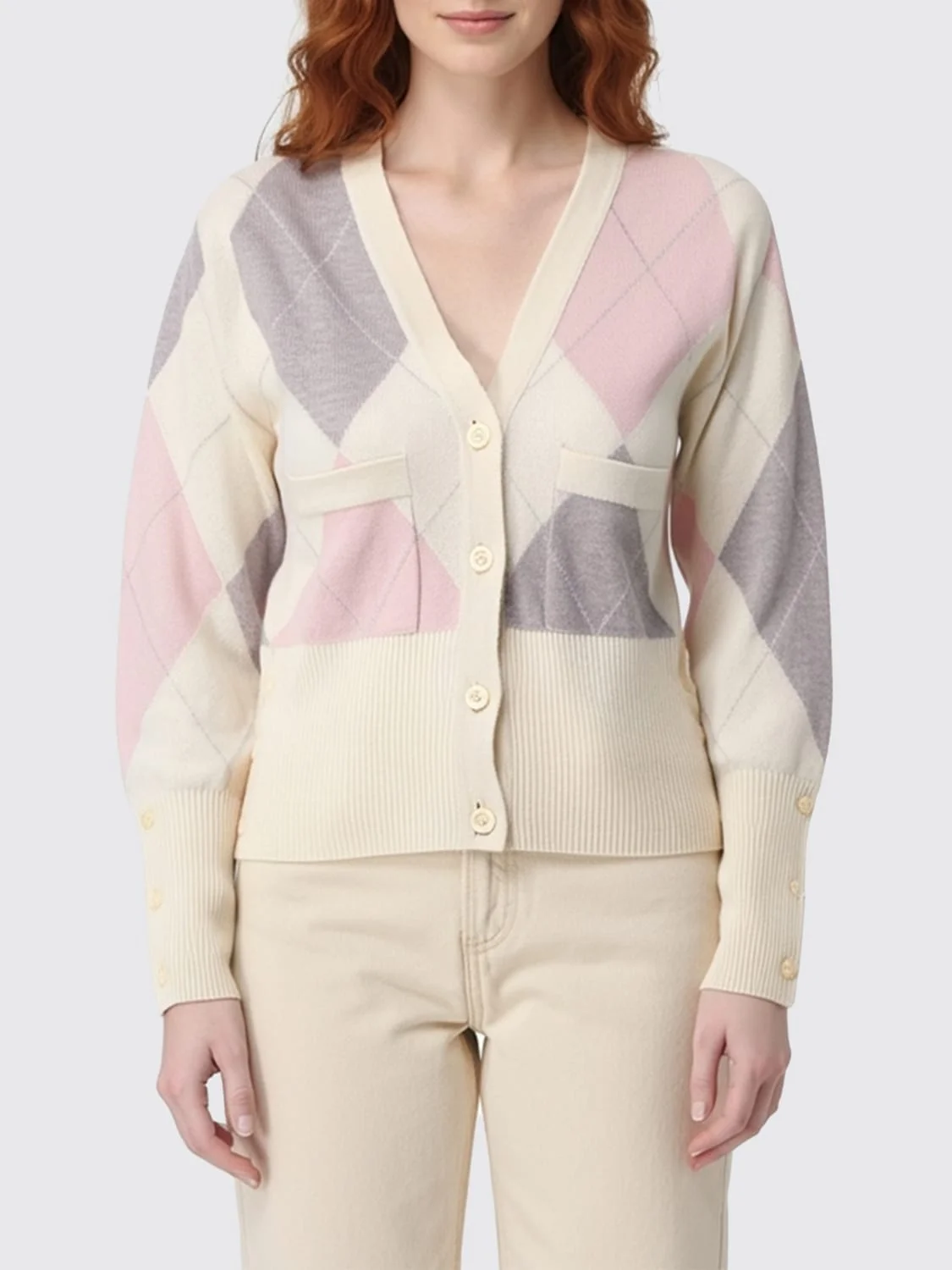 ARGYLE INTARSIA CASHMERE V NECK CARDIGAN