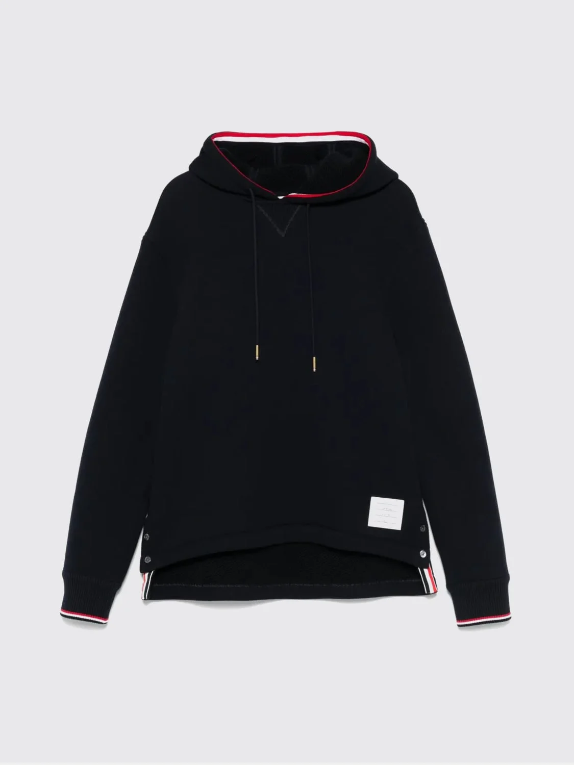 DESCRIPTION - Style: College, Sporty - Hood: With drawstrings - Shoulders: Regular - Sleeves: Long - Bottom: With straight hemline - Model: With hood - Materials: Cotton blend - Pattern: Plain-colored DETAILS AND CARE Composition 92% cotton, 8% polyamide SIZE AND FIT Sizes not available Size and fit Relaxed fit Designer code: MJT544AJ0233 415 Giglio Code: H39225 Designer: Thom Browne Collection: Thom Browne Men Category: Clothing Thom Browne
