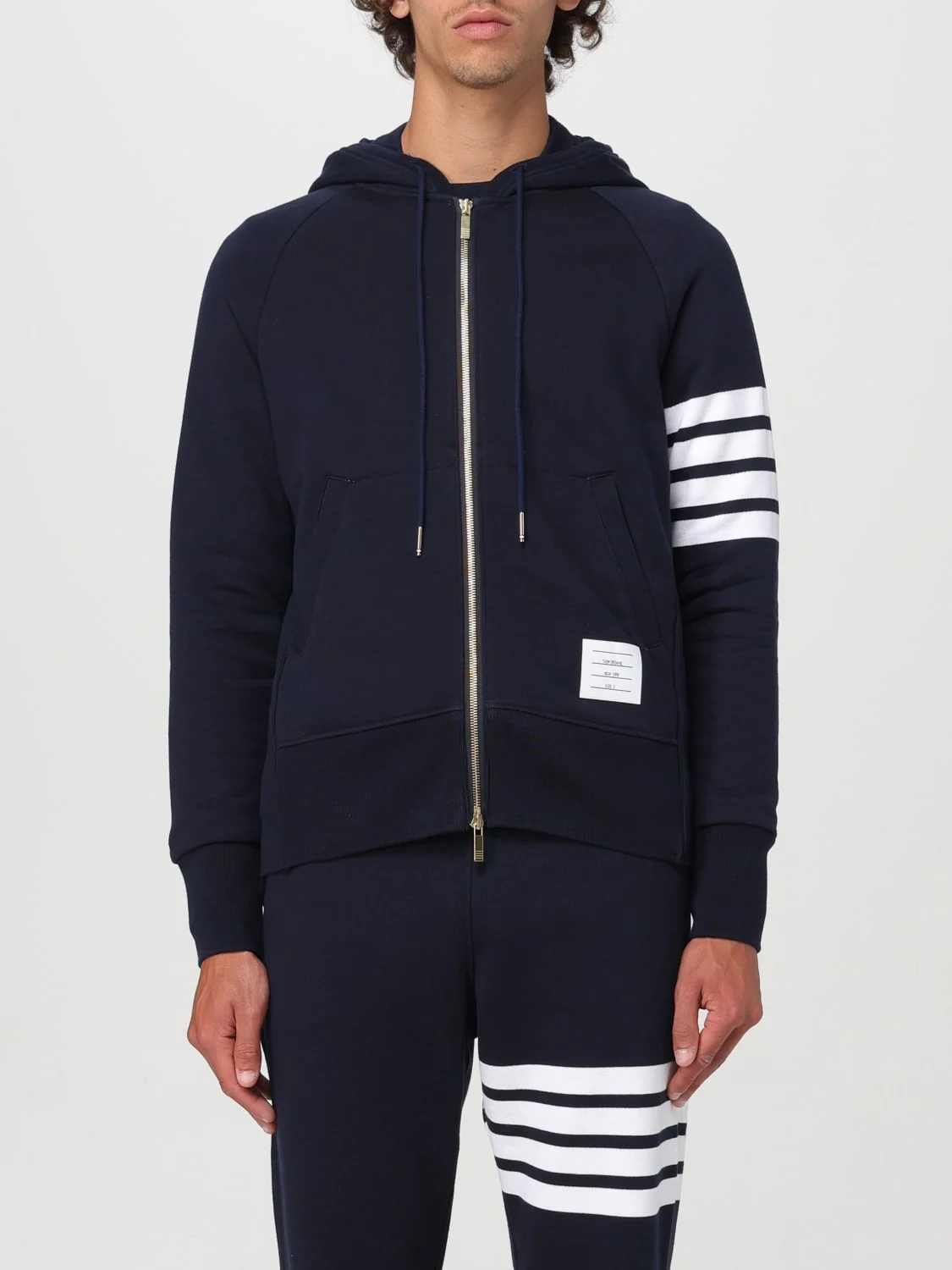 DESCRIPTION - Style: College - Logo: Contrasting - Hood: With drawstrings - Shoulders: Regular - Sleeves: Long - Closure: With zip and double slider - Pockets: America - Bottom: With straight hemline - Model: With hood - Materials: Cotton - Pattern: Plain-colored DETAILS AND CARE Composition 100% cotton SIZE AND FIT Sizes not available Size and fit Regular fit Designer code: MJT022H00535 461 Giglio Code: G50266 Designer: Thom Browne Collection: Thom Browne Men Category: Clothing Thom Browne