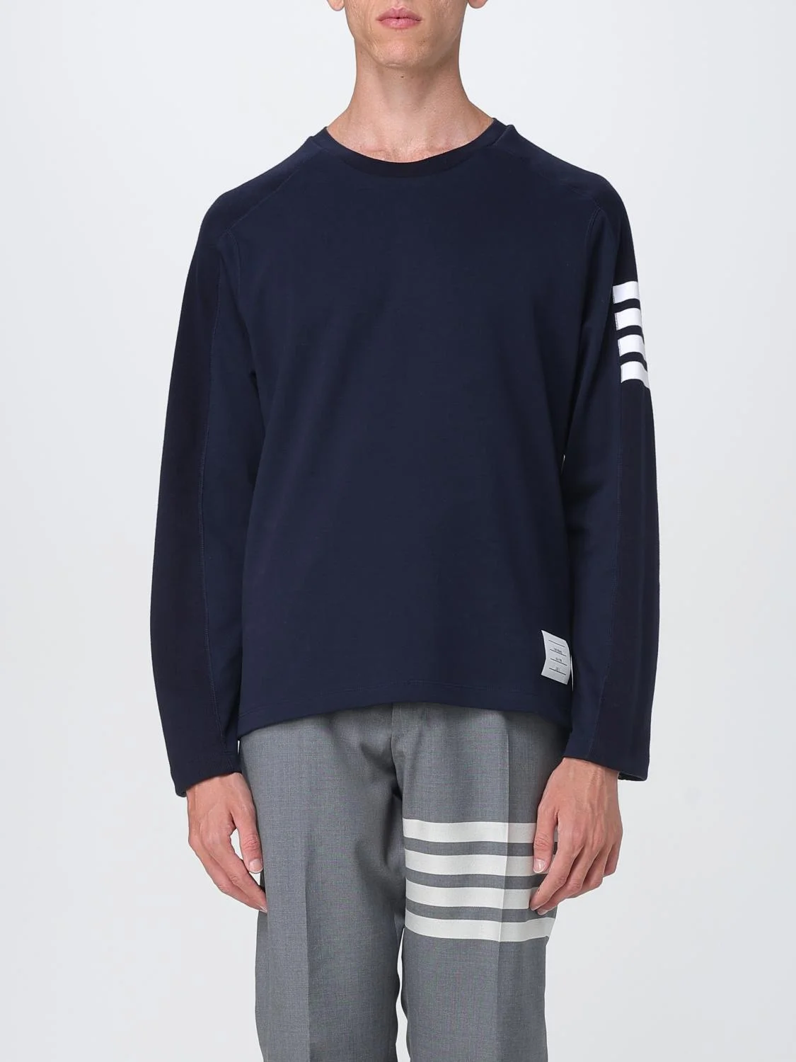 DESCRIPTION - Style: Sporty - Neckline: Crewneck - Shoulders: Relaxed - Sleeves: Long - Cuffs: Stretch - Bottom: With straight hemline - Logo: undefined - Materials: Cotton - Pattern: Logo DETAILS AND CARE Composition 100% Cotone SIZE AND FIT Sizes not available Size and fit Relaxed fit Designer code: MJS245A07323 415 Giglio Code: H24199 Designer: Thom Browne Collection: Thom Browne Men Category: Clothing Thom Browne