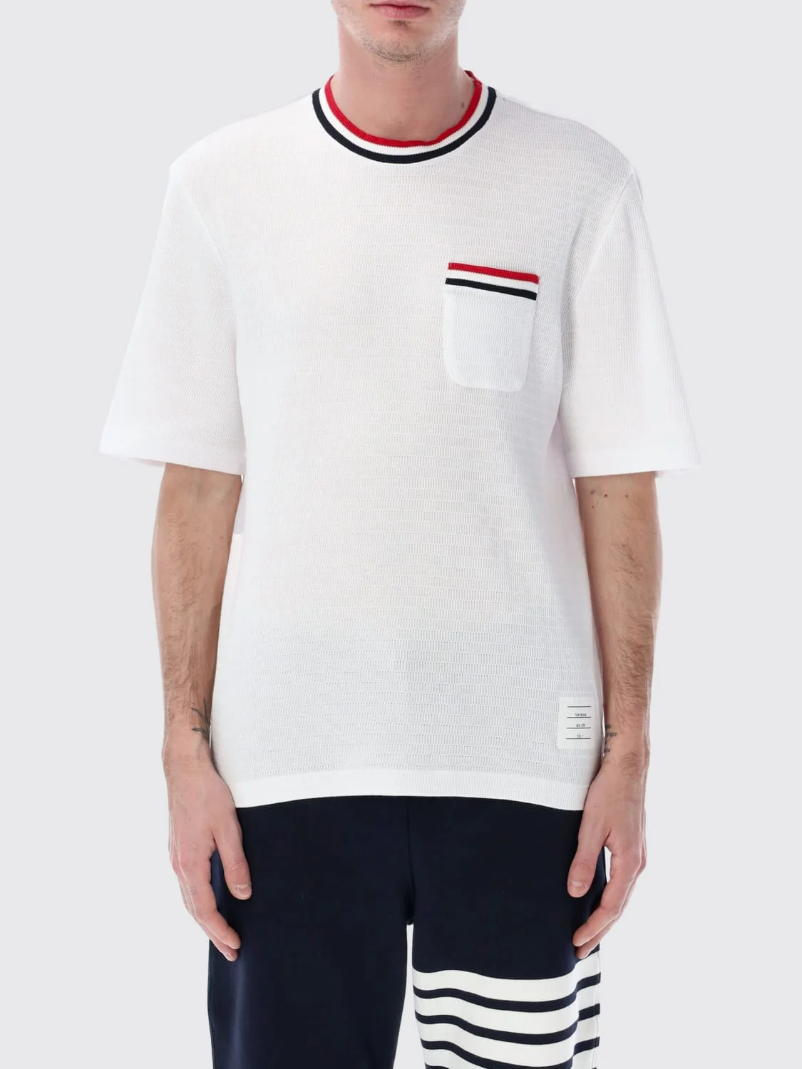 DESCRIPTION - Style: Casual - Model: Crewneck - Neckline: Crewneck - Shoulders: Regular - Sleeves: Short - Pockets: Patch pocket - Bottom: With straight hemline - Occasion: Morning - Logo: Thom Browne 4-bar - Materials: Cotton - Pattern: Plain-colored DETAILS AND CARE Composition 100% cotton SIZE AND FIT Sizes not available Size and fit Regular fit Designer code: MJS259AJ0153 100 Giglio Code: H90284 Designer: Thom Browne Collection: Thom Browne Men Category: Clothing Thom Browne