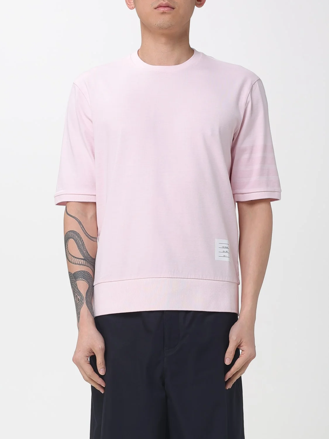 DESCRIPTION - Style: College, Sporty - Model: Crewneck - Neckline: Crewneck - Shoulders: Regular - Sleeves: Short - Bottom: With straight hemline - Logo: Thom Browne 4-bar - Materials: Cotton - Pattern: Plain-colored DETAILS AND CARE Composition GENERAL COTTON 100 - SIZE AND FIT Sizes not available Size and fit Slim fit Designer code: MJS303AJ0253 680 Giglio Code: H87850 Designer: Thom Browne Collection: Thom Browne Men Category: Clothing Thom Browne