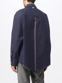 Descrizione - Casual style - Over fit - Brushed cotton - Classic collar - Patch pocket on the chest - Regular shoulders - Central closure with buttons - Logo applied in fabric - Long sleeves - Cuffs with buttons - Contrasting Flag logo applied on the back - Contrasting band - Curved hem DETAILS AND CARE Composition 100% COTTON SIZE AND FIT Sizes not available Designer code: MWL381AF0351 415 Giglio Code: E59100 Designer: Thom Browne Collection: Thom Browne Men Category: Clothing Thom Browne