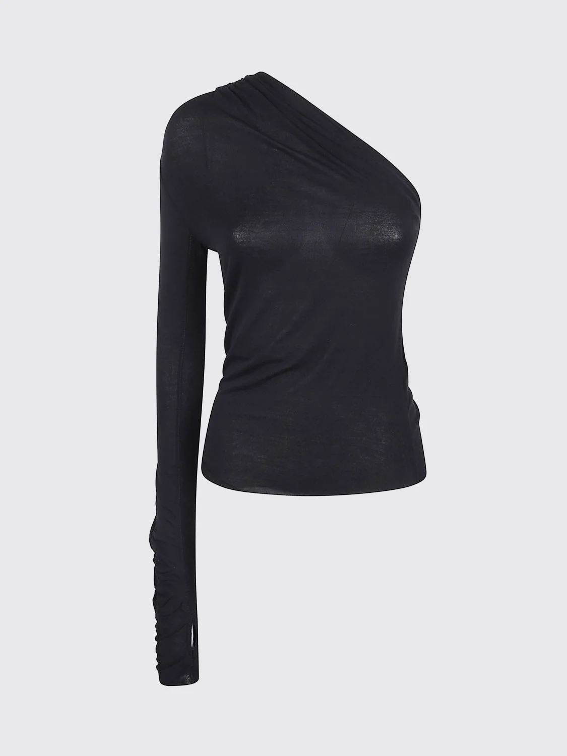 one-shoulder draped top