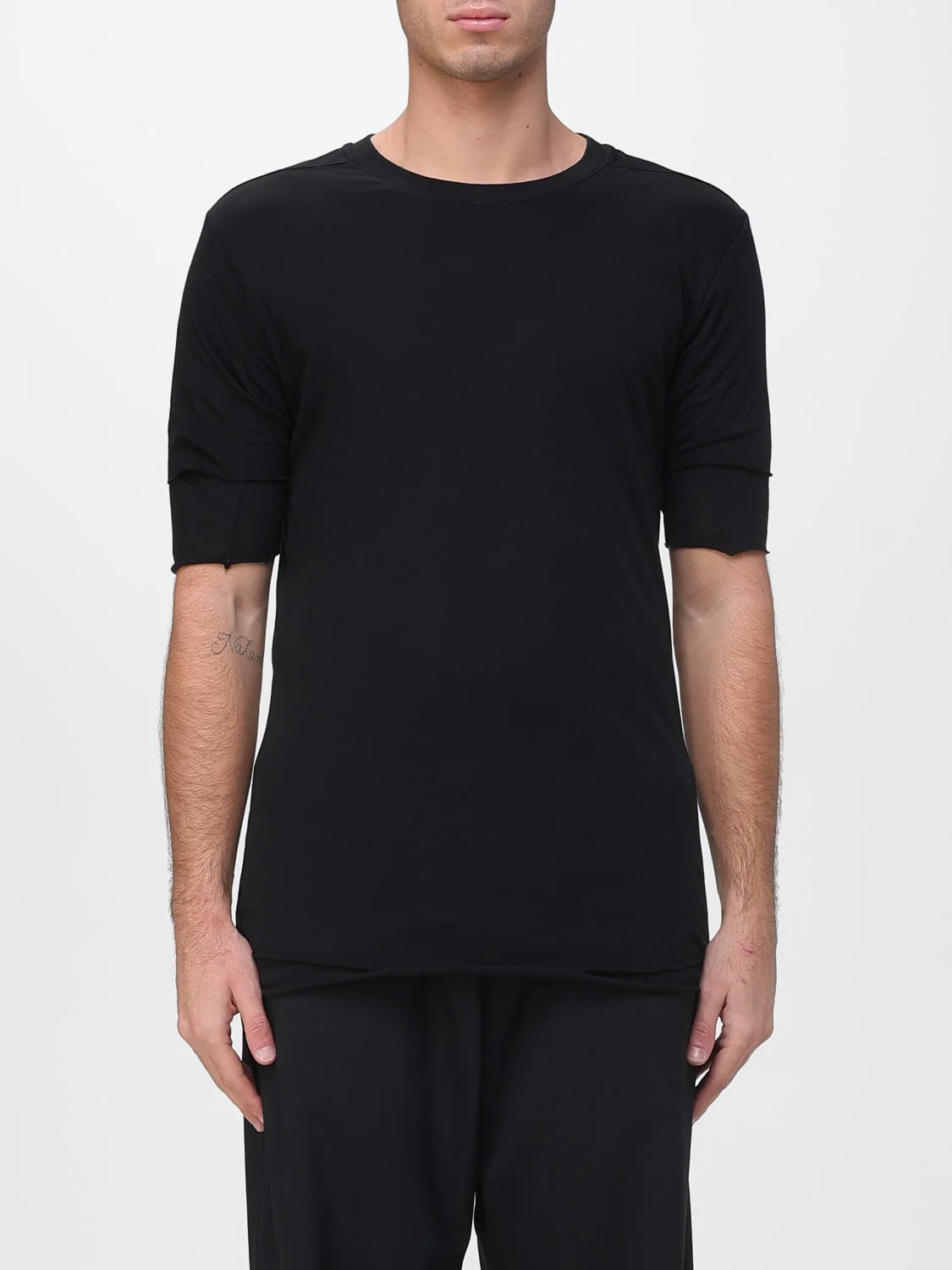 DESCRIPTION - Style: Basic - Model: Crewneck - Neckline: Crewneck - Shoulders: Regular - Sleeves: Short - Bottom: With straight hemline - Materials: Viscose - Pattern: Plain-colored DETAILS AND CARE Composition 95%viscose, 5%elastane SIZE AND FIT Sizes not available Size and fit Slim fit Designer code: MTS892 BLACK Giglio Code: H64713 Designer: Thom Krom Collection: Thom Krom Men Category: Clothing Thom Krom