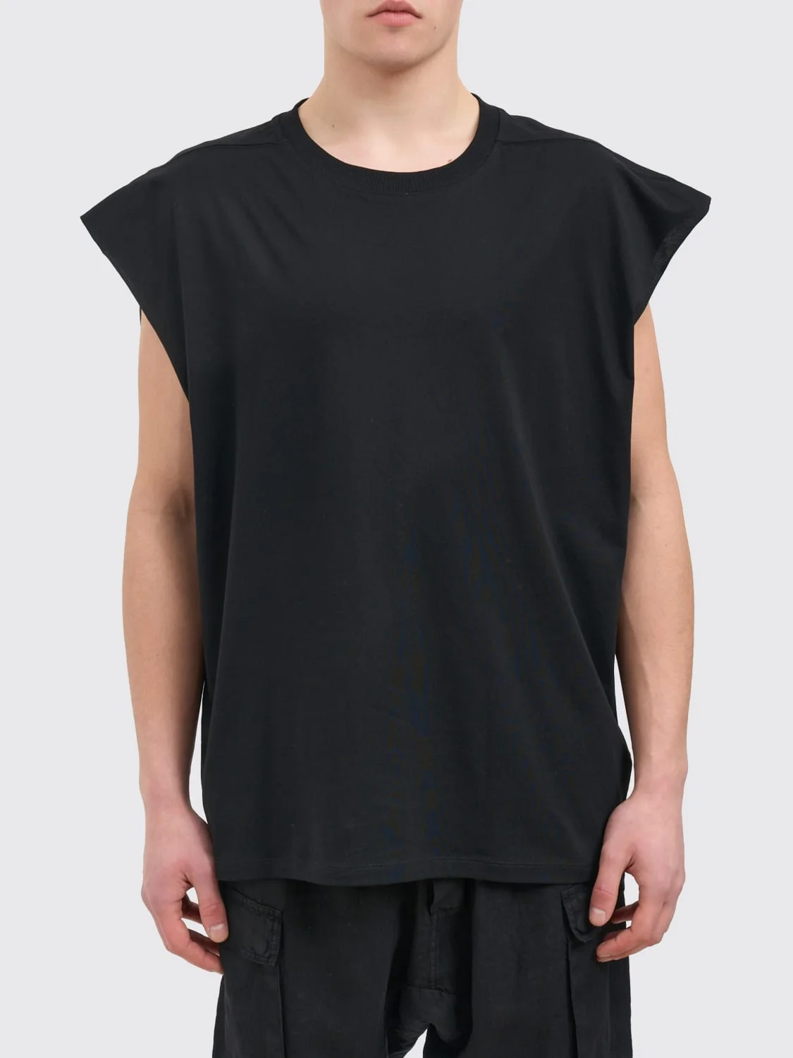 DESCRIPTION - Style: Contemporary, Underground - Details: With contrasting seams - Model: Crewneck - Neckline: Crewneck - Shoulders: Relaxed - Sleeves: Sleeveless - Bottom: With straight hemline - Materials: Cotton - Pattern: Plain-colored DETAILS AND CARE Composition 100 CO SIZE AND FIT Sizes not available Size and fit Relaxed fit Designer code: MTS925 BLACK Giglio Code: H97336 Designer: Thom Krom Collection: Thom Krom Men Category: Clothing Thom Krom