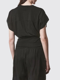 DESCRIPTION - Style: Basic - Neckline: Crewneck - Shoulders: Relaxed - Bottom: Stretch - Sleeves: Short sleeve tops - Materials: Modal - Pattern: Plain-colored DETAILS AND CARE Composition Modal | 80% MODAL 12% SILK 8% ELASTANE SIZE AND FIT Sizes not available Size and fit Cropped fita Designer code: WTS624 BLACK Giglio Code: I04371 Designer: Thom Krom Collection: Thom Krom Woman Category: Clothing Thom Krom