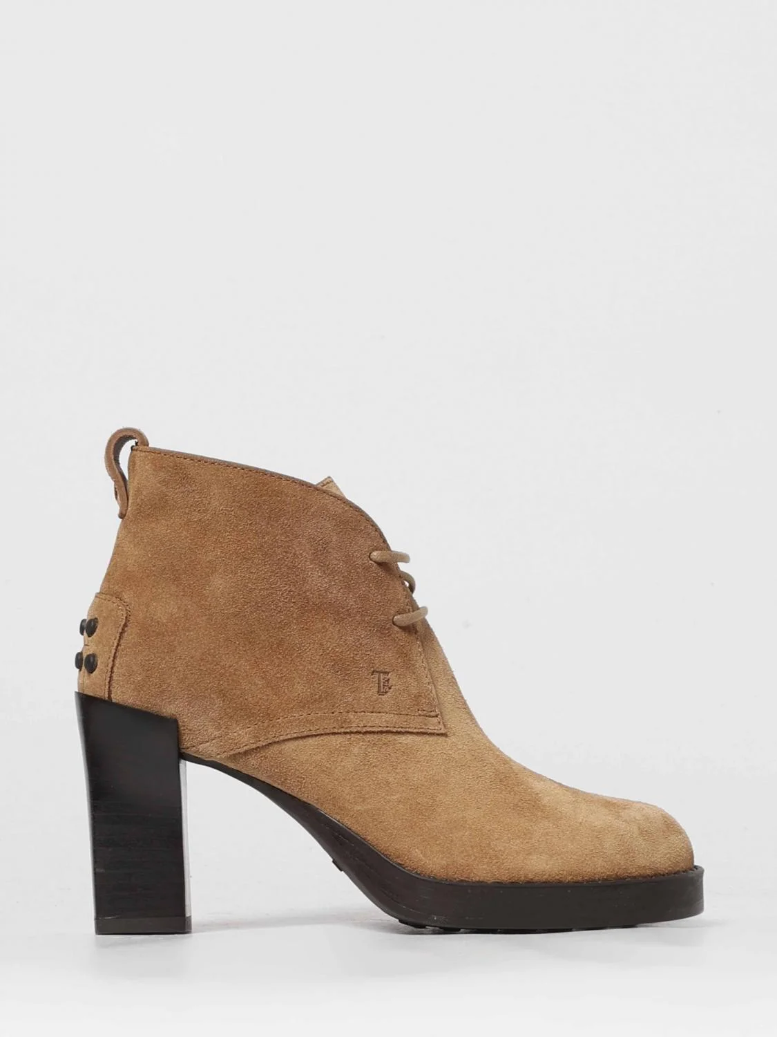 DESCRIPTION - Logo: Engraved, Tod's T Timeless - Details: With back tab - Lining: Leather, With logo - Model: Lace up - Toe: Round - Shaft: Low - Sole: Rubber - Heel: Medium heel, With rubbers - Materials: Suede calfskin - Pattern: Plain-colored DETAILS AND CARE Composition CALFSKIN SIZE AND FIT Sizes Heel: 6 cm Designer code: XXW79L0JL50RE0 S816 Giglio Code: 437547 Designer: Tod's Collection: Tod's Woman Category: Shoes Tod's