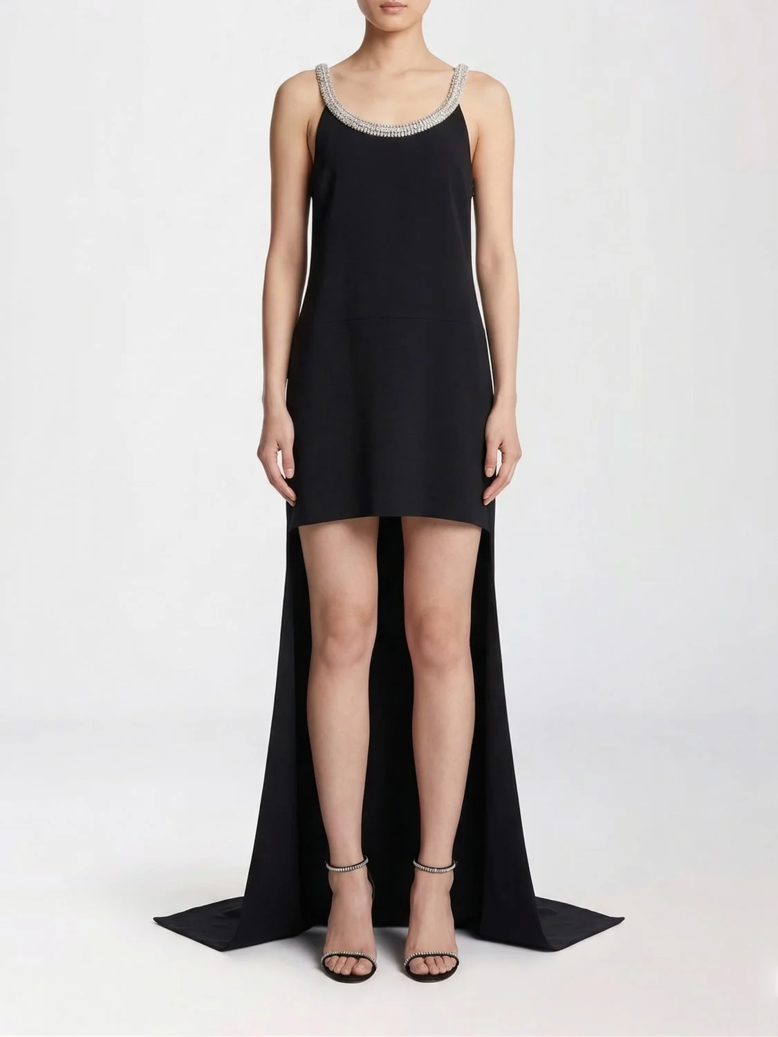 CRYSTAL EMBROIDERY SLEEVELESS ASYMMETRIC COCKTAIL DRESS