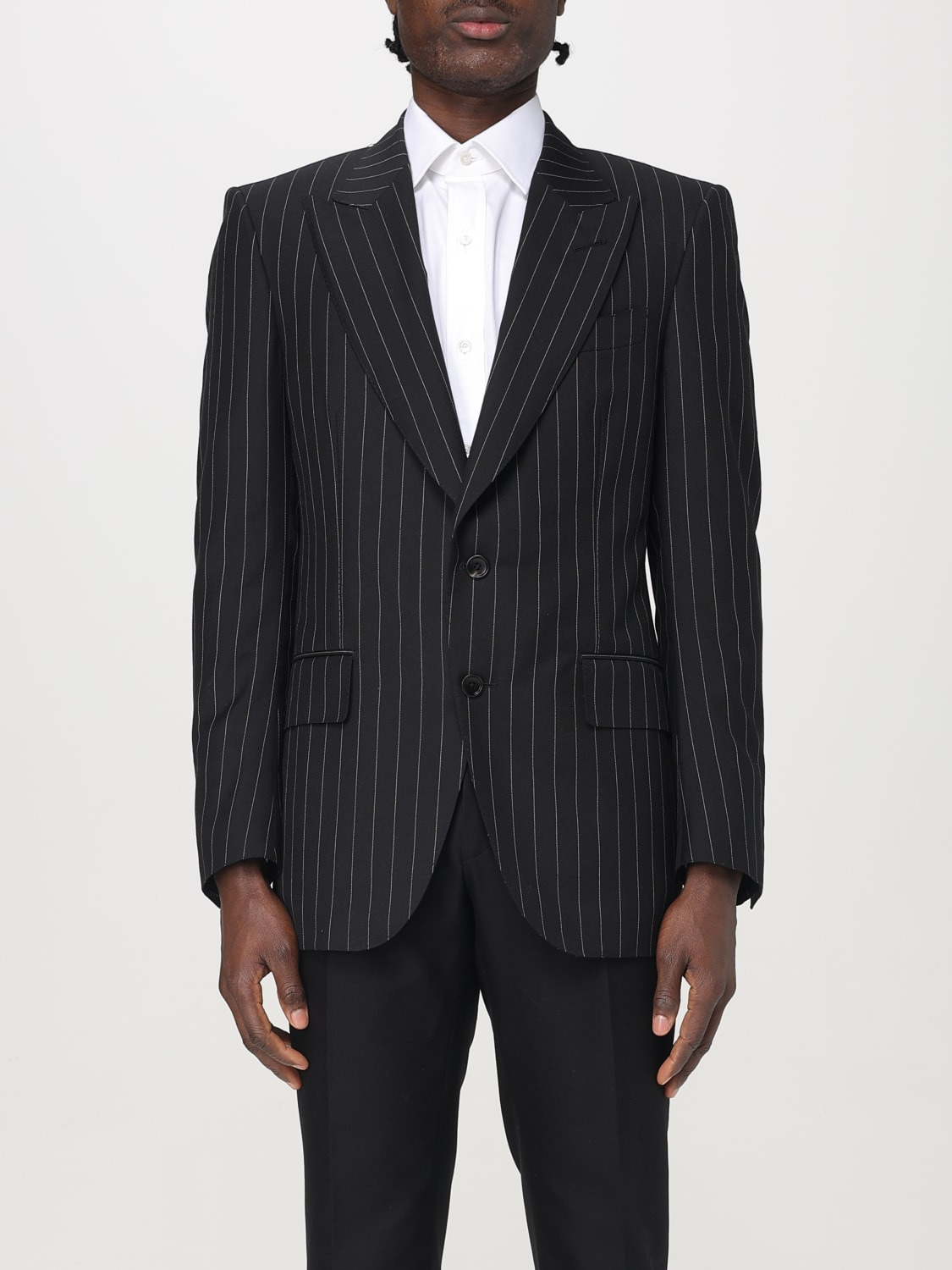 DESCRIPTION - Style: Formal - Model: Single-breasted - Length: Short - Neck: Peak lapels - Shoulders: Regular - Sleeves: Long - Bottom: With straight hemline - Pockets: With flap - Closure: 2-button - Materials: Mohair - Pattern: Pinstripe DETAILS AND CARE Composition 74% Virgin Wool 26% Mohair SIZE AND FIT Sizes not available Size and fit Regular fit Designer code: JHPP01WMP21 LB999 Giglio Code: G49946 Designer: Tom Ford Collection: Tom Ford Men Category: Clothing Tom Ford