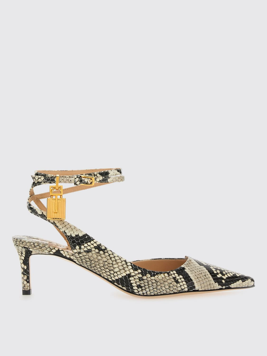 DESCRIPTION - Lining: With logo - Model: Slingback - Toe: Almond - Ankle: With strap - Sole: Leather - Details: With padlock - Heel: undefined - Materials: Calfskin - Pattern: Python DETAILS AND CARE Composition CALF SKIN SIZE AND FIT Sizes Heel: 6,5 cm Designer code: W3674LCL385G 3WG01 Giglio Code: H15623 Designer: Tom Ford Collection: Tom Ford Woman Category: Shoes Tom Ford
