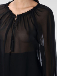 LONG SLEEVE SILK BLOUSE WITH DRAWSTRINGS