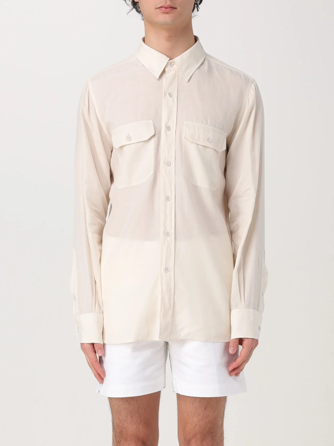 DESCRIPTION - Style: Country - Neck: Italian - Shoulders: Regular - Cuffs: 2-button - Closure: With buttons - Pockets: Patch pocket with flap and button - Bottom: With curved hemline - Sleeves: Long sleeve shirts - Materials: Cupro - Pattern: Plain-colored DETAILS AND CARE Composition Cupro | 62% cupro 38% cotton SIZE AND FIT Sizes not available Size and fit Regular fit Designer code: HME001FMG002S24 IG082 Giglio Code: G44731 Designer: Tom Ford Collection: Tom Ford Men Category: Clothing Tom Ford