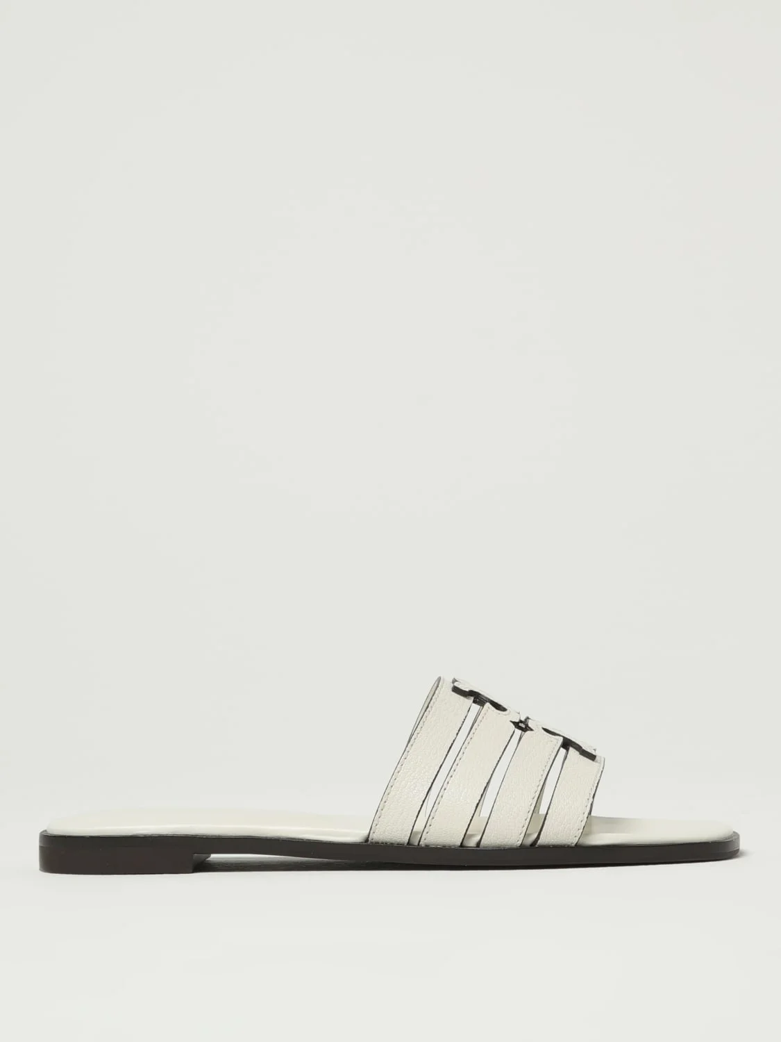 DESCRIPTION - Lining: Leather, With logo - Model: Slip on - Toe: Open, Squared - Sole: Leather - Heel: Low heel - Logo: Tory Burch double T - Materials: Grained calfskin - Pattern: Monogram DETAILS AND CARE Composition 100% calf leather/rubber sole SIZE AND FIT Sizes not available Designer code: 158616 101 Giglio Code: H14639 Designer: Tory Burch Collection: Shoes Tory Burch Category: Shoes > Heeled sandal