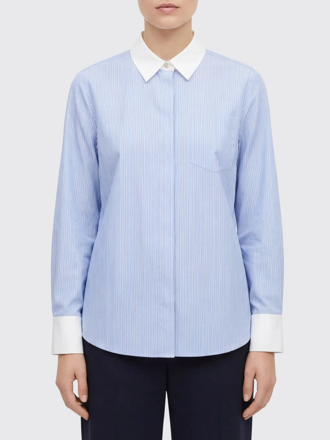 DESCRIPTION - Style: Classic, Formal - Neck: Classic - Shoulders: Regular - Closure: Concealed buttons - Pockets: Patch pocket - Bottom: With curved hemline - Sleeves: Long sleeve shirts - Materials: Cotton - Pattern: Stripes DETAILS AND CARE Composition GENERAL COTTON 100 - SIZE AND FIT Sizes not available Size and fit Regular fit Designer code: 177867 439 Giglio Code: I07970 Designer: Tory Burch Collection: Clothing Tory Burch Category: Clothing > Shirt