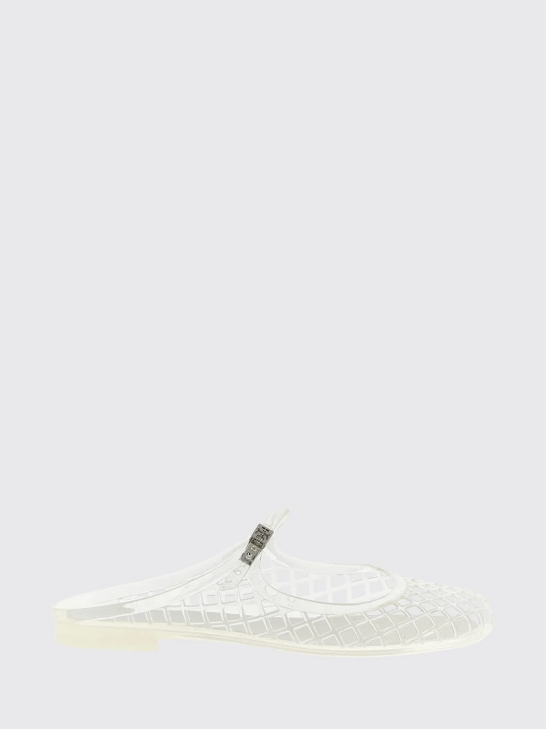 DESCRIPTION - Style: Casual - Toe: Round, With flowers - Sole: Rubber - Heel: Low heel - Lining: Rubber, With logo - Logo: Tory Burch double T - Closure: With adjustable strap - Occasion: Morning - Model: Pierced - Materials: PVC - Pattern: Plain-colored DETAILS AND CARE Composition 97% thermoplastic polyurethane 3% zinc alloy SIZE AND FIT Sizes not available Designer code: 163189 100 Giglio Code: H89003 Designer: Tory Burch Collection: Shoes Tory Burch Category: Shoes > Heeled sandal