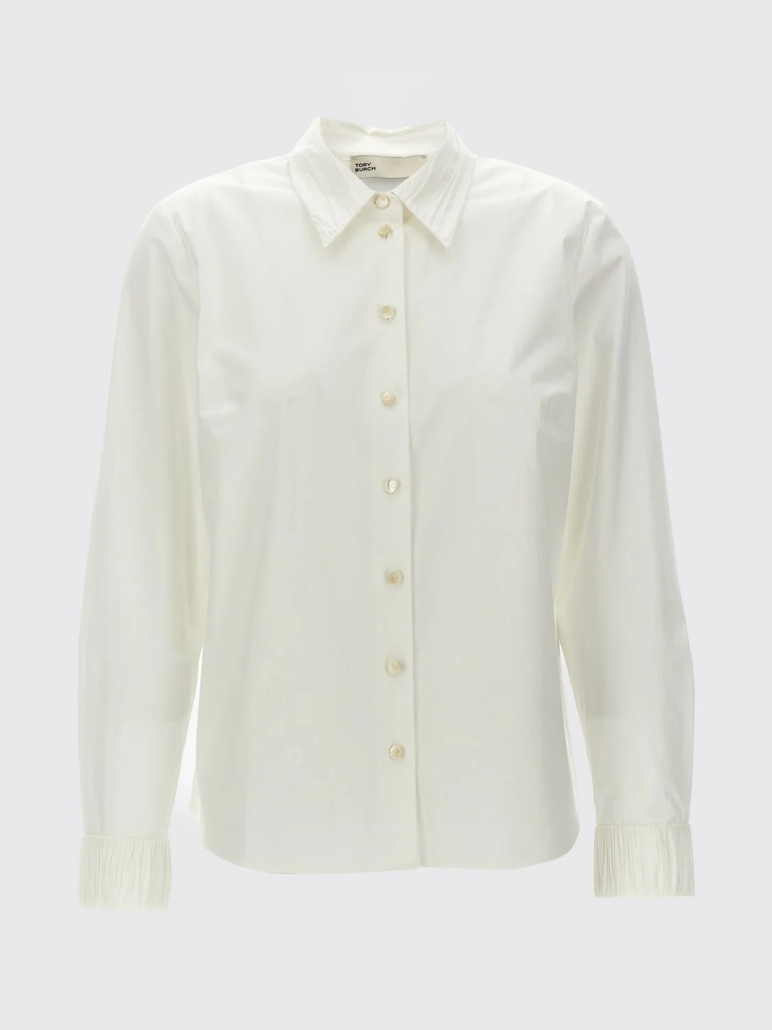 DESCRIPTION - Style: Classic - Neck: Classic - Shoulders: Regular - Closure: With buttons - Bottom: With curved hemline - Sleeves: Long sleeve shirts - Materials: Stretch cotton - Pattern: Plain-colored DETAILS AND CARE Composition 96% cotton, 4% elastane SIZE AND FIT Sizes not available Size and fit Relaxed fit Designer code: 163363 100 Giglio Code: G01212 Designer: Tory Burch Collection: Clothing Tory Burch Category: Clothing > Shirt