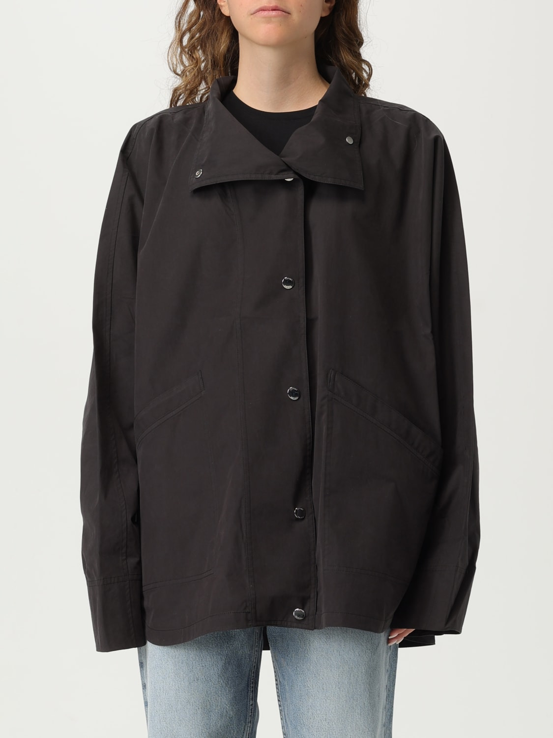DESCRIPTION - Style: Classic, Minimal - Neck: Classic - Shoulders: Relaxed - Sleeves: Long - Closure: Press-studs - Pockets: America - Bottom: With asymmetric hemline - Length: Short jackets - Materials: Cotton blend - Pattern: Plain-colored DETAILS AND CARE Composition not available SIZE AND FIT Sizes not available Size and fit Relaxed fit Designer code: 253WRO0222FB0427 001 Giglio Code: H18032 Designer: Toteme Collection: Toteme Woman Category: Clothing Toteme