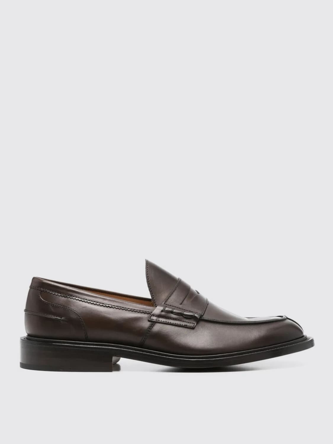 DESCRIPTION - Details: With penny keeper - Lining: With logo - Model: Slip on - Toe: Raised toe box - Sole: Leather - Materials: Smooth calfskin - Pattern: Plain-colored DETAILS AND CARE Composition Leather | 100% CALF LEATHER (100% CALF LEATHE SIZE AND FIT Sizes not available Designer code: 32273 ESPRESO BURNISHED Giglio Code: G82250 Designer: Trickers Collection: Trickers Men Category: Shoes Trickers