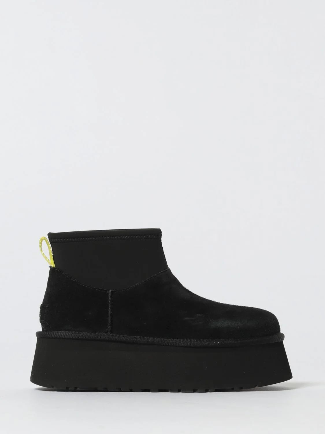 DESCRIPTION - Logo: Back - Details: With back tab - Model: Wedge - Toe: Round - Shaft: Low - Sole: EVA, Platform - Heel: Low heel - Lining: Shearling, With logo - Materials: Neoprene, Suede - Pattern: Plain-colored DETAILS AND CARE Composition CAMOSCIO SIZE AND FIT Sizes not available Designer code: 1168170 BLK Giglio Code: H23686 Designer: UGG Collection: UGG Woman Category: Shoes UGG