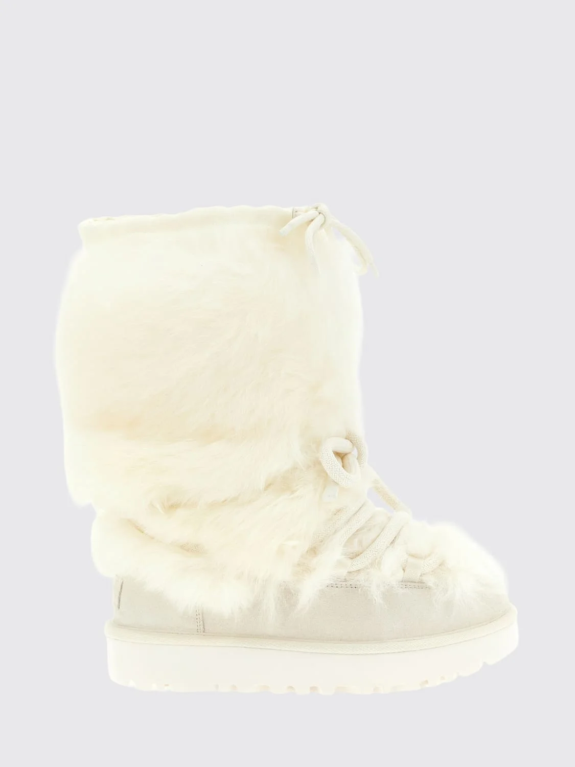 DESCRIPTION - Style: Casual - Logo: Back, Engraved - Model: Slip on - Toe: Round - Ankle: Padded - Shaft: Calf-length - Sole: Dented tread, EVA, Platform - Heel: Low heel - Lining: With logo, 울 - Details: With adjustable bands - Sustainable: Made with recycled materials - Occasion: Morning - Materials: Sheepskin fur, Suede - Pattern: Plain-colored DETAILS AND CARE Composition 80% ot 15% lh 5% te SIZE AND FIT Sizes not available Designer code: 1171570 WHT Giglio Code: H67666 Designer: UGG Collection: UGG Woman Category: Shoes UGG