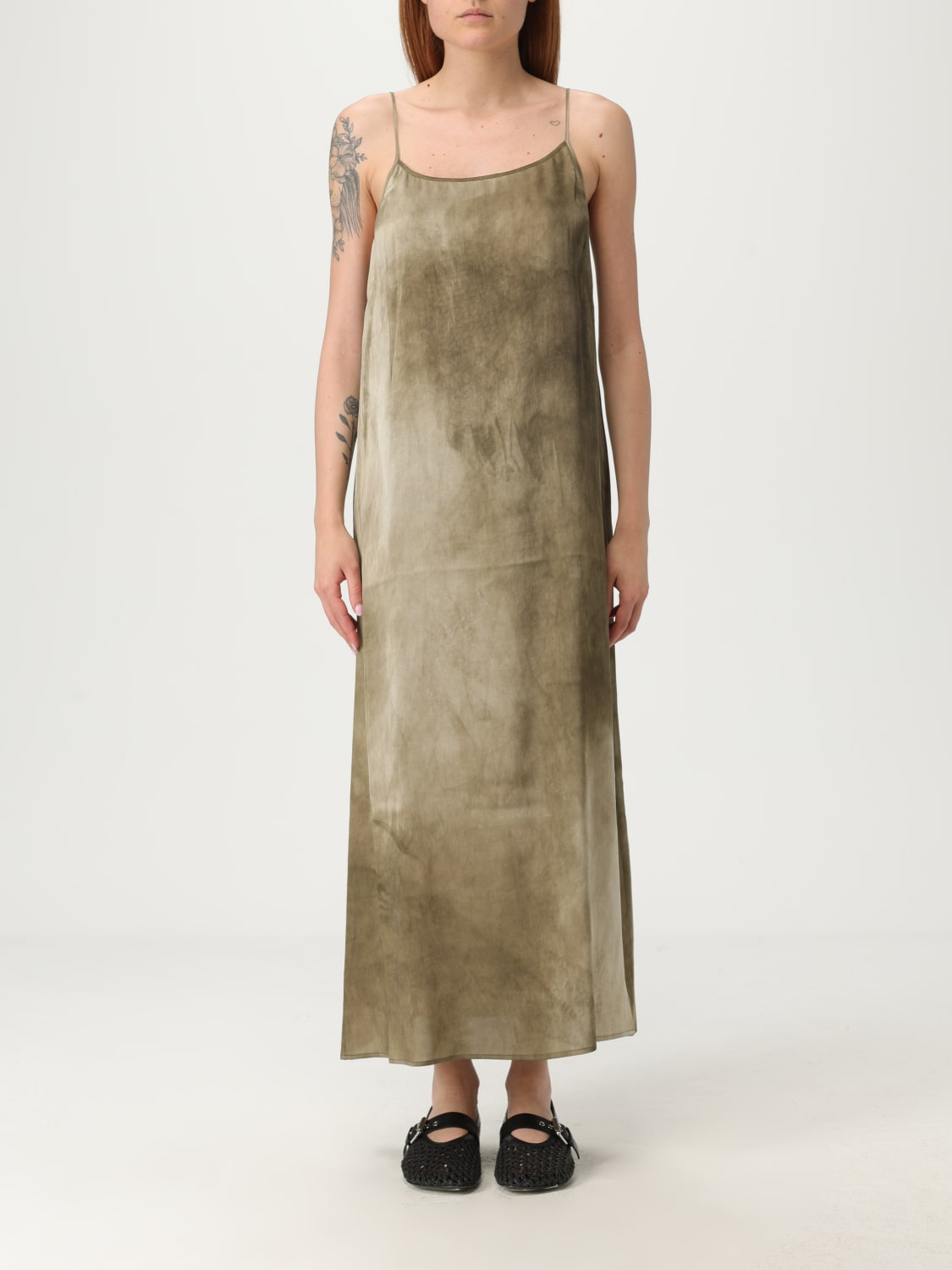 DESCRIPTION - Style: Casual - Neckline: U neckline - Shoulders: Regular - Bottom: With straight hemline - Length: Long dresses - Occasion: Morning dresses - Sleeves: Off-the-shoulder dresses - Materials: Silk - Pattern: Plain-colored DETAILS AND CARE Composition 94% Silk 6% Elastane SIZE AND FIT Sizes not available Size and fit Regular fit Designer code: UW5082 UW840 Giglio Code: G80781 Designer: Uma Wang Collection: Uma Wang Woman Category: Clothing Uma Wang