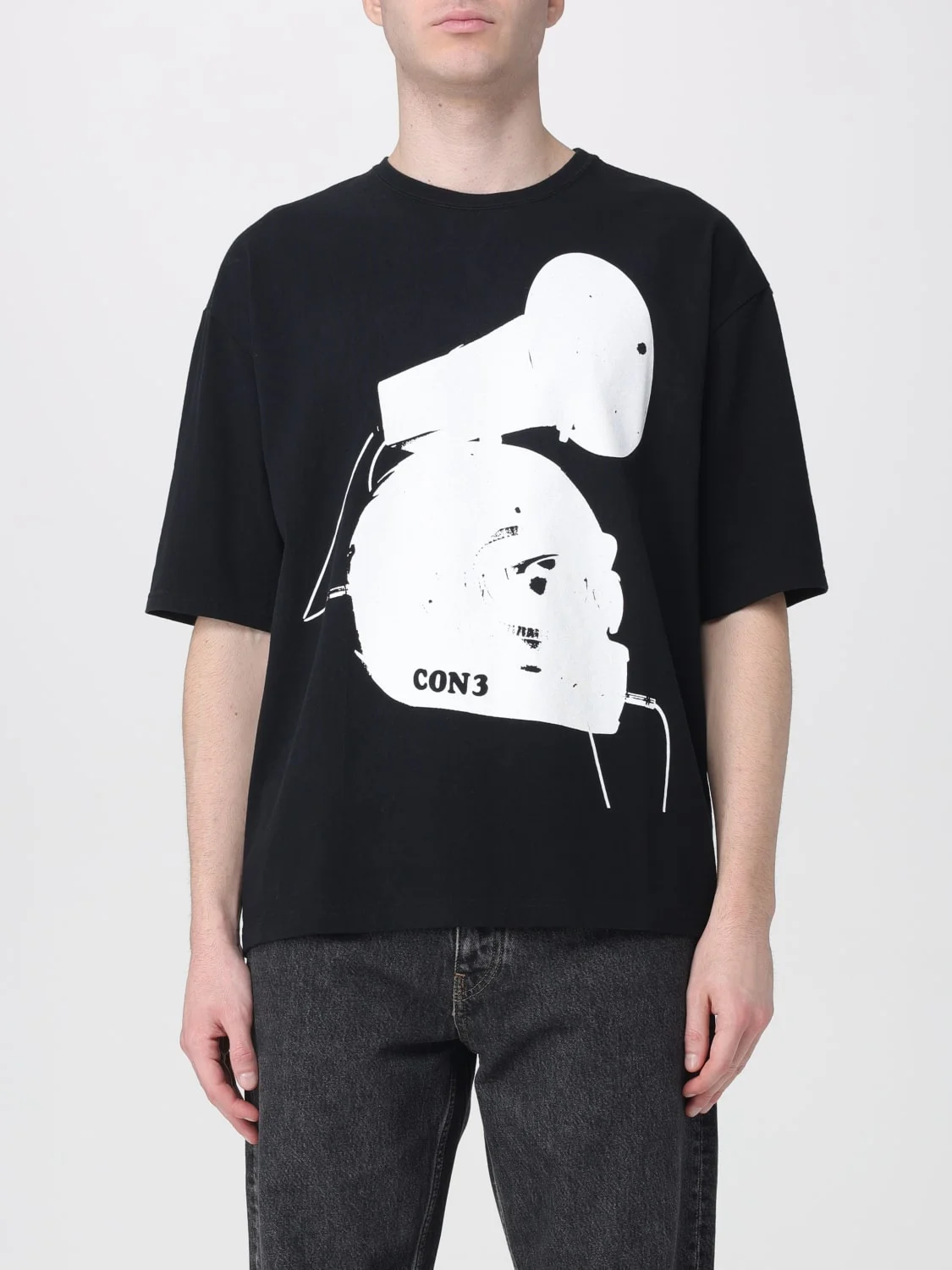 DESCRIPTION - Style: Sporty, Urban-street - Logo: Contrasting - Neckline: Crewneck - Shoulders: Relaxed - Sleeves: Short - Bottom: With straight hemline - Materials: Cotton - Pattern: Graphic DETAILS AND CARE Composition 100% COTTON SIZE AND FIT Sizes not available Size and fit Regular fit Designer code: UC2E48134 BLACK Giglio Code: H71979 Designer: Undercover Collection: Undercover Men Category: Clothing Undercover