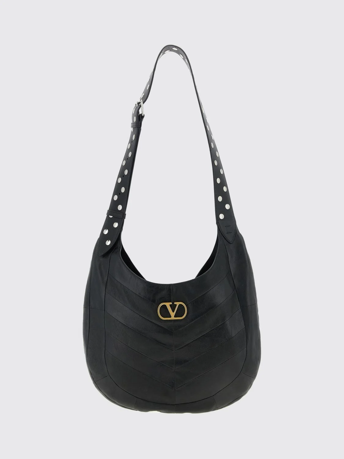 Black Boho Nappa Leather Chevron Pattern Bag