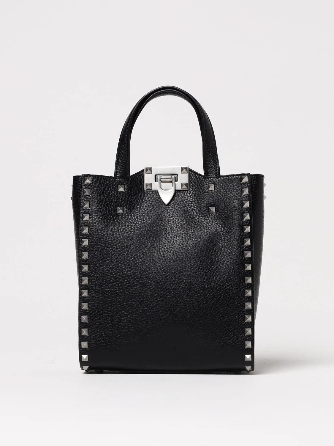 DESCRIPTION - Logo: Back - Details: With studs - Lining: Leather - Model: Hand - Closure: With metallic mechanism - Shape: Rectangular - Handle: Double - Shoulder strap: Adjustable and removable - Measurements: Shoulder strap length from shoulder: 52 cm - Materials: Grained calfskin - Pattern: undefined DETAILS AND CARE Composition VT100% SIZE AND FIT Sizes Width : 21 cm Height: 24 cm Depth: 8 cm Handle height: 9 cm Designer code: 6Y2B0B43TED 0NO Giglio Code: G52283 Designer: Valentino Garavani Collection: Valentino Garavani Men Category: Bags Valentino Garavani