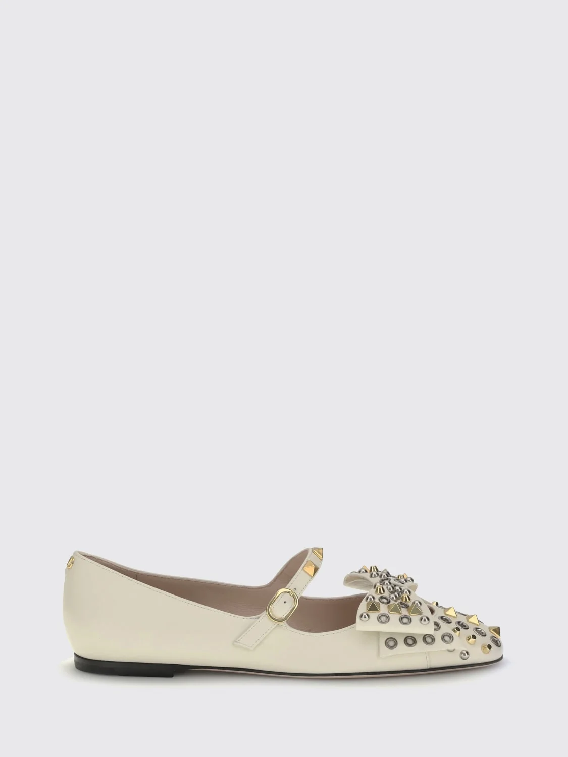 DESCRIPTION - Style: Rock - Logo: Back, VLogo Signature - Details: With bow, With studs - Lining: Leather, With logo - Model: Mary Jane - Toe: Round - Sole: Leather - Closure: With adjustable strap - Materials: Smooth calfskin - Pattern: Embroidery DETAILS AND CARE Composition GENERAL CALF LEATHER BOS TAURUS 100 - GENERAL SIZE AND FIT Sizes not available Designer code: 7W2S0MX7ETL 098 Giglio Code: H14790 Designer: Valentino Garavani Collection: Valentino Garavani Woman Category: Shoes Valentino Garavani