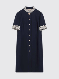 DESCRIPTION - Style: Elegant, Vintage - Neck: Mandarin collar - Shoulders: Regular - Closure: With buttons - Bottom: With straight hemline - Length: Midi dresses - Occasion: Morning dresses - Sleeves: Short-sleeve dresses - Materials: Virgin wool - Pattern: Plain-colored DETAILS AND CARE Composition 65%VIRGIN WOOL 35%SILK SIZE AND FIT Sizes not available Size and fit Regular fit Designer code: 7B3VAG101CF R7D Giglio Code: H37251 Designer: Valentino Collection: Valentino Woman Category: Clothing Valentino
