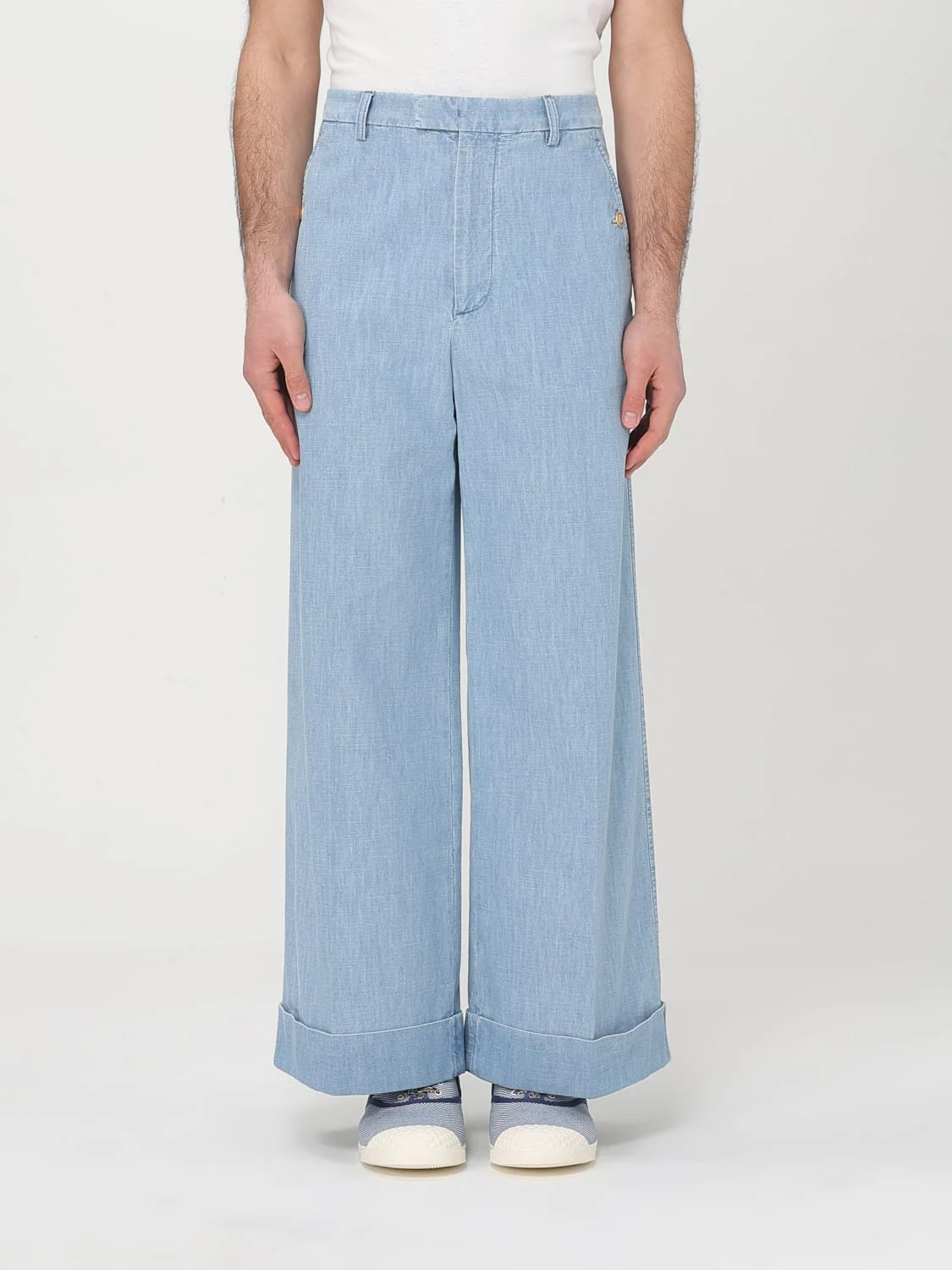 DESCRIPTION - Style: Basic - Model: Palazzo - Closure: With button and zip - Pockets: With back flap pocket - Waist: With loops - Bottom: With straight hemline - Materials: Denim - Pattern: Plain-colored DETAILS AND CARE Composition CO100% SIZE AND FIT Sizes not available Size and fit Regular fit Designer code: 6V3DD03UALM 508 Giglio Code: 421798 Designer: Valentino Collection: Valentino Men Category: Clothing Valentino
