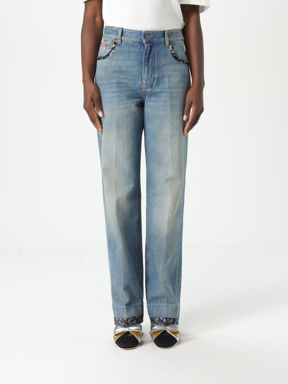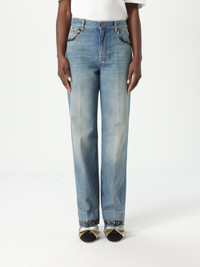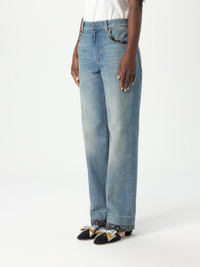 DESCRIPTION - Style: Basic, Casual - Details: WIth contrasting edges - Closure: With button and zip - Pockets: 5-pocket - Waist: With loops, High waist - Bottom: With straight hemline - Materials: Cotton denim - Pattern: Plain-colored DETAILS AND CARE Composition 100 AF SIZE AND FIT Sizes not available Size and fit Straight leg, Regular fit Designer code: 6B0DD19X94V 558 Giglio Code: 427921 Designer: Valentino Collection: Valentino Woman Category: Clothing Valentino