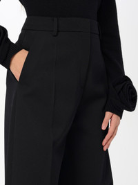 DESCRIPTION - Pockets: America , Back slit pocket - Waist: High , With loops - Bottom: With straight hemline - Closure: With button and zip - Materials: Wool - Pattern: Plain-colored DETAILS AND CARE Composition 100 AF SIZE AND FIT Sizes not available Size and fit Regular fit Designer code: 5B0RB62088J 0NO Giglio Code: 416337 Designer: Valentino Collection: Valentino Woman Category: Clothing Valentino