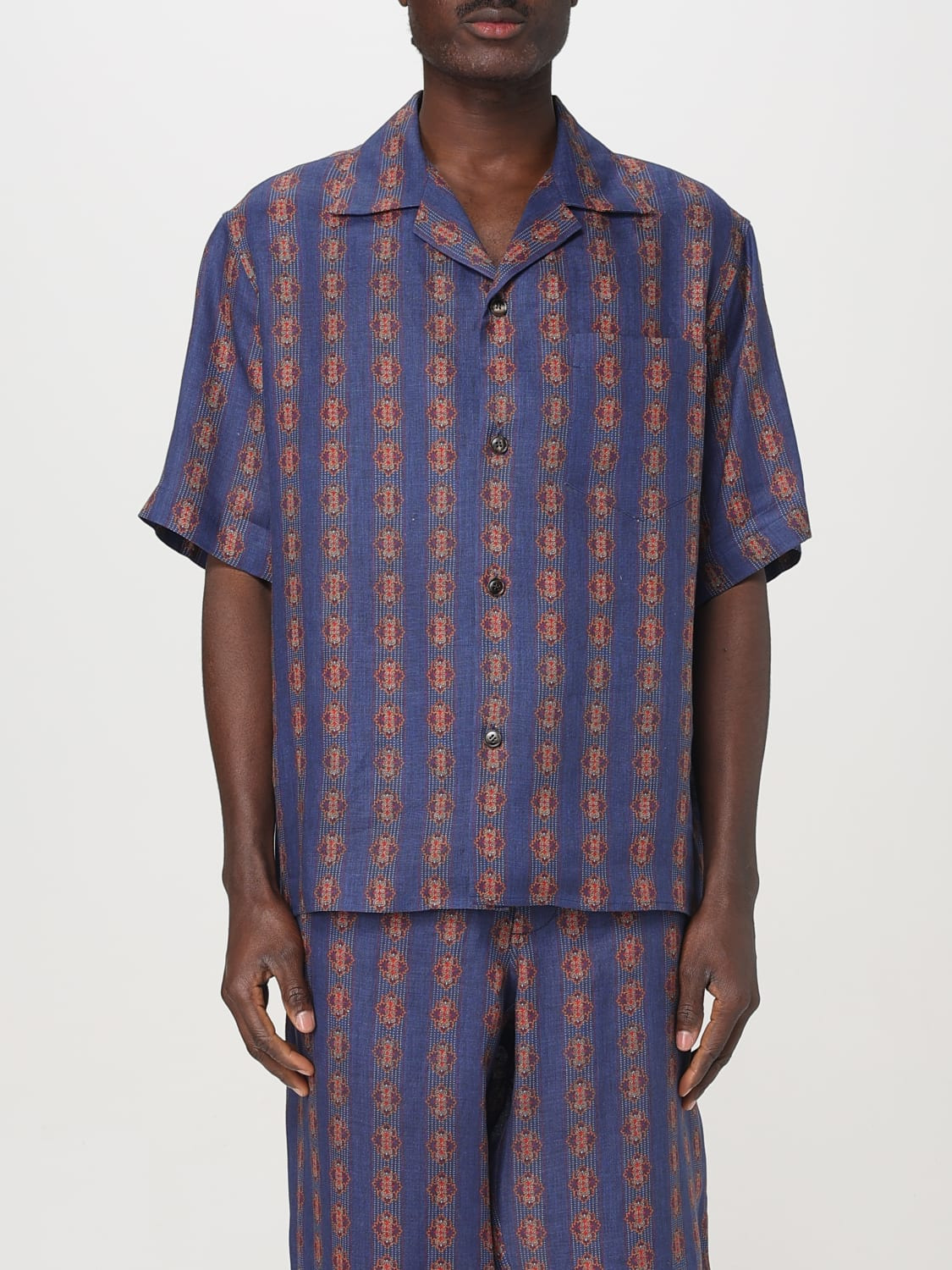DESCRIPTION - Style: Casual - Neck: Cuban collar - Shoulders: Relaxed - Closure: With buttons - Pockets: Patch pocket - Bottom: With straight hemline - Sleeves: Short sleeve shirts - Materials: Linen - Pattern: Graphic DETAILS AND CARE Composition LI100% SIZE AND FIT Sizes not available Size and fit Relaxed fit Designer code: 6V3AA111AN0 QR4 Giglio Code: 421810 Designer: Valentino Collection: Valentino Men Category: Clothing Valentino