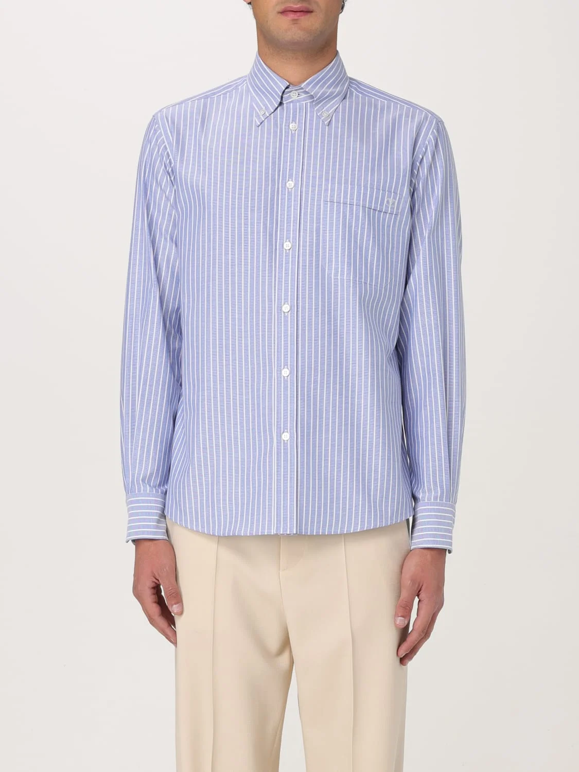 DESCRIPTION - Style: Classic - Logo: Embroidered - Neck: Button-down - Shoulders: Regular - Closure: With buttons - Pockets: Patch pocket - Bottom: With curved hemline - Sleeves: Long sleeve shirts - Materials: Cotton poplin - Pattern: Stripes DETAILS AND CARE Composition CO100% SIZE AND FIT Sizes not available Size and fit Slim fit Designer code: 6V3ABQ35AL0 PG8 Giglio Code: 421803 Designer: Valentino Collection: Valentino Men Category: Clothing Valentino