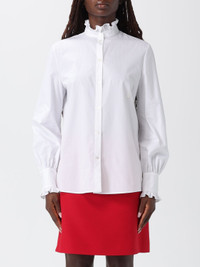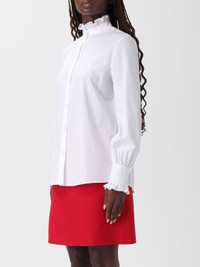 DESCRIPTION - Style: Elegant - Neck: Rouches - Shoulders: Regular - Sleeves: Long sleeve shirts - Closure: With buttons - Bottom: With curved hemline - Materials: Cotton poplin - Pattern: Plain-colored DETAILS AND CARE Composition not available SIZE AND FIT Sizes not available Size and fit Regular fit Designer code: BAB7R55A6 001 Giglio Code: H33779 Designer: Valentino Collection: Valentino Woman Category: Clothing Valentino