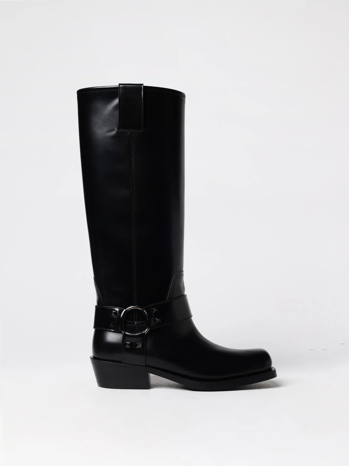 DESCRIPTION - Details: With back tab, With metallic ring, With studs - Lining: Leather, With logo - Model: Slip on - Toe: Squared - Shaft: High - Sole: Leather and rubber - Heel: Low heel - Materials: Smooth calfskin - Pattern: Plain-colored DETAILS AND CARE Composition VT100% SIZE AND FIT Sizes Heel: 4,5 cm Designer code: 5W0S0KV3NIB 0NO Giglio Code: 416329 Designer: Valentino Garavani Collection: Valentino Garavani Woman Category: Shoes Valentino Garavani