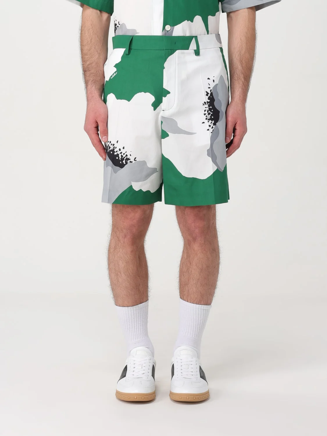 DESCRIPTION - Style: Contemporary - Pockets: Back patch pocket, Slit pocket - Waist: With loops - Bottom: With straight hemline - Logo: With logo - Closure: With button and zip - Occasion: Morning - Materials: Cotton - Pattern: Floral DETAILS AND CARE Composition CO100% SIZE AND FIT Sizes not available Size and fit Regular fit Designer code: 4V0RDD12A2L ZXU Giglio Code: 400423 Designer: Valentino Collection: Valentino Men Category: Clothing Valentino