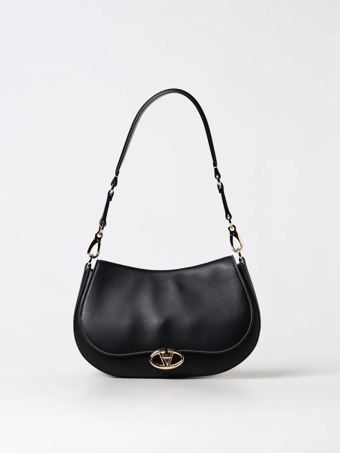 DESCRIPTION - Logo: Metallic, VLogo Signature - Model: Shoulder - Closure: With metal interlocking mechanism - Shape: Round - Dimensions: Medium - Handle: Removable - Shoulder strap: Removable - Measurements: Shoulder strap length from shoulder: 48.5 cm - Materials: Smooth calfskin - Pattern: Plain-colored DETAILS AND CARE Composition VT SIZE AND FIT Sizes Width : 32 cm Height: 20 cm Depth: 10 cm Handle height: 31 cm Designer code: 5W2B0N96CVC 0NO Giglio Code: 412087 Designer: Valentino Garavani Collection: Valentino Garavani Woman Category: Bags Valentino Garavani