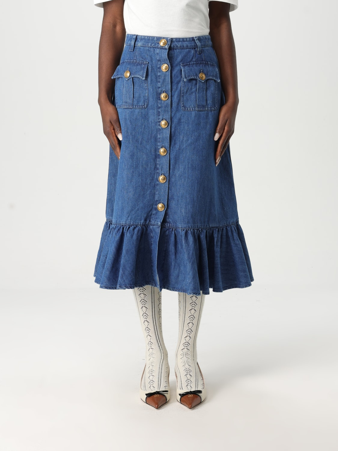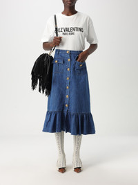 DESCRIPTION - Style: Casual - Details: With buttons - Closure: With buttons - Pockets: Patch pocket with flap and button - Waist: undefined - Bottom: With straight hemline - Length: Midi skirts - Materials: Cotton denim - Pattern: Plain-colored DETAILS AND CARE Composition _64% CO, 36% LI SIZE AND FIT Sizes not available Size and fit Regular fit Designer code: 6B3DD18L94C 558 Giglio Code: G55870 Designer: Valentino Collection: Valentino Woman Category: Clothing Valentino