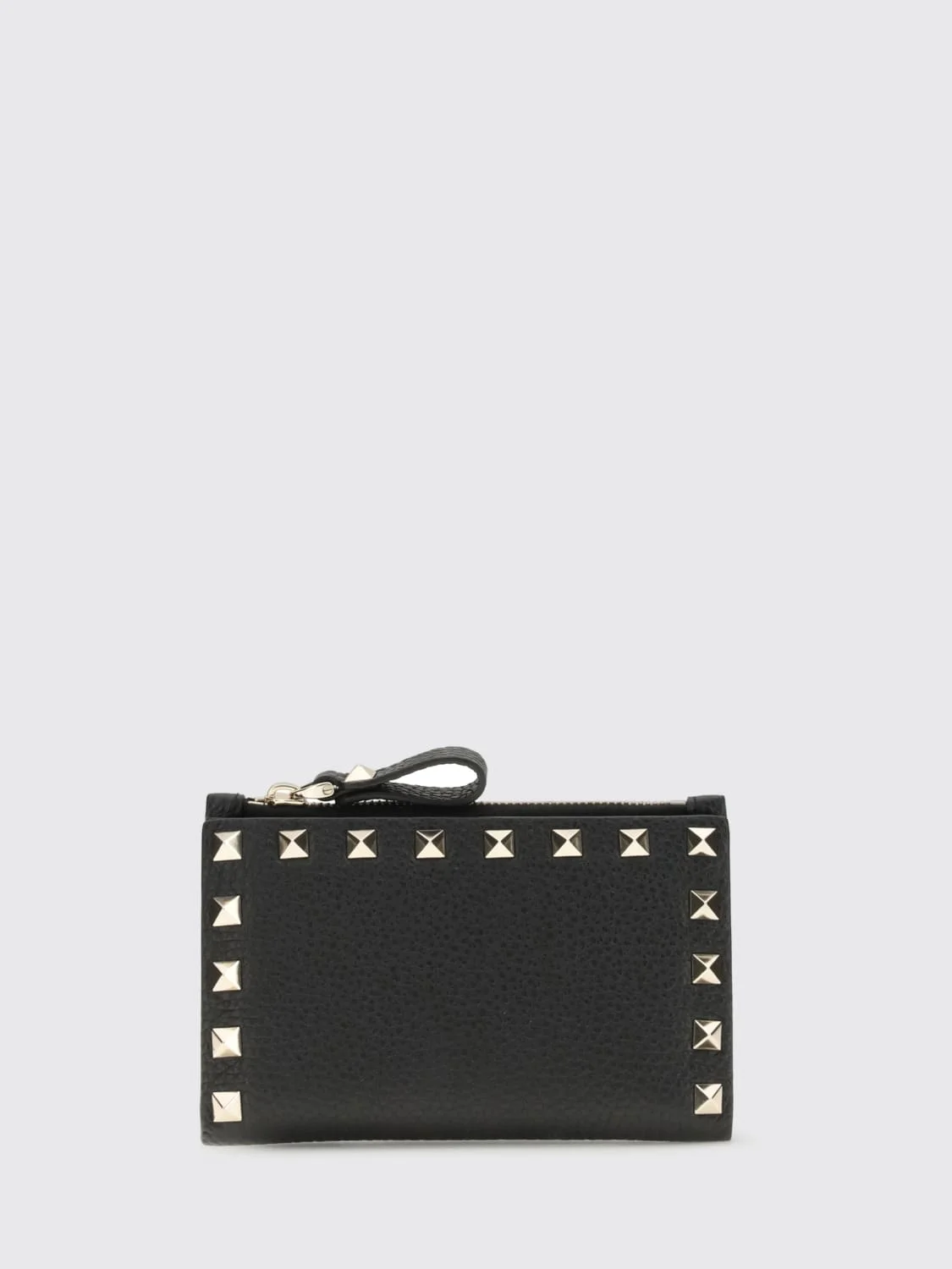 DESCRIPTION - Style: Rock - Logo: Laminated - Details: With studs - Lining: 2 slit pockets, With 8 card slots, With zip pocket - Model: Bifold - Closure: Press stud - Shape: Rectangular - Occasion: Morning - Materials: Grained calfskin - Pattern: Embroidery DETAILS AND CARE Composition GENERAL CALF LEATHER BOS TAURUS 100 - SIZE AND FIT Sizes Designer code: 8W2P0605VSH 0NO Giglio Code: H83395 Designer: Valentino Garavani Collection: Accessories Valentino Garavani Category: Accessories > Wallet