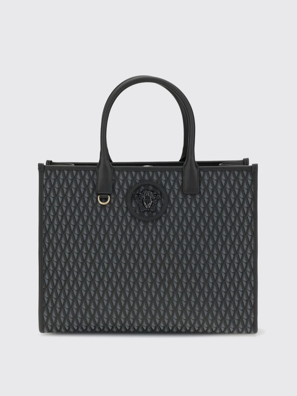 DESCRIPTION - Style: Elegant - Model: Tote - Shape: Rectangular - Handle: Double - Logo: Versace Medusa - Materials: Calfskin - Pattern: Logo DETAILS AND CARE Composition OUTER COTTON 100 - INNER CALF LEATHER BOS TAU SIZE AND FIT Sizes Width : 40 cm Height: 30 cm Depth: 16 cm Designer code: 10047411A16242 1B09V Giglio Code: H40721 Designer: Versace Collection: Versace Woman Category: Bags Versace