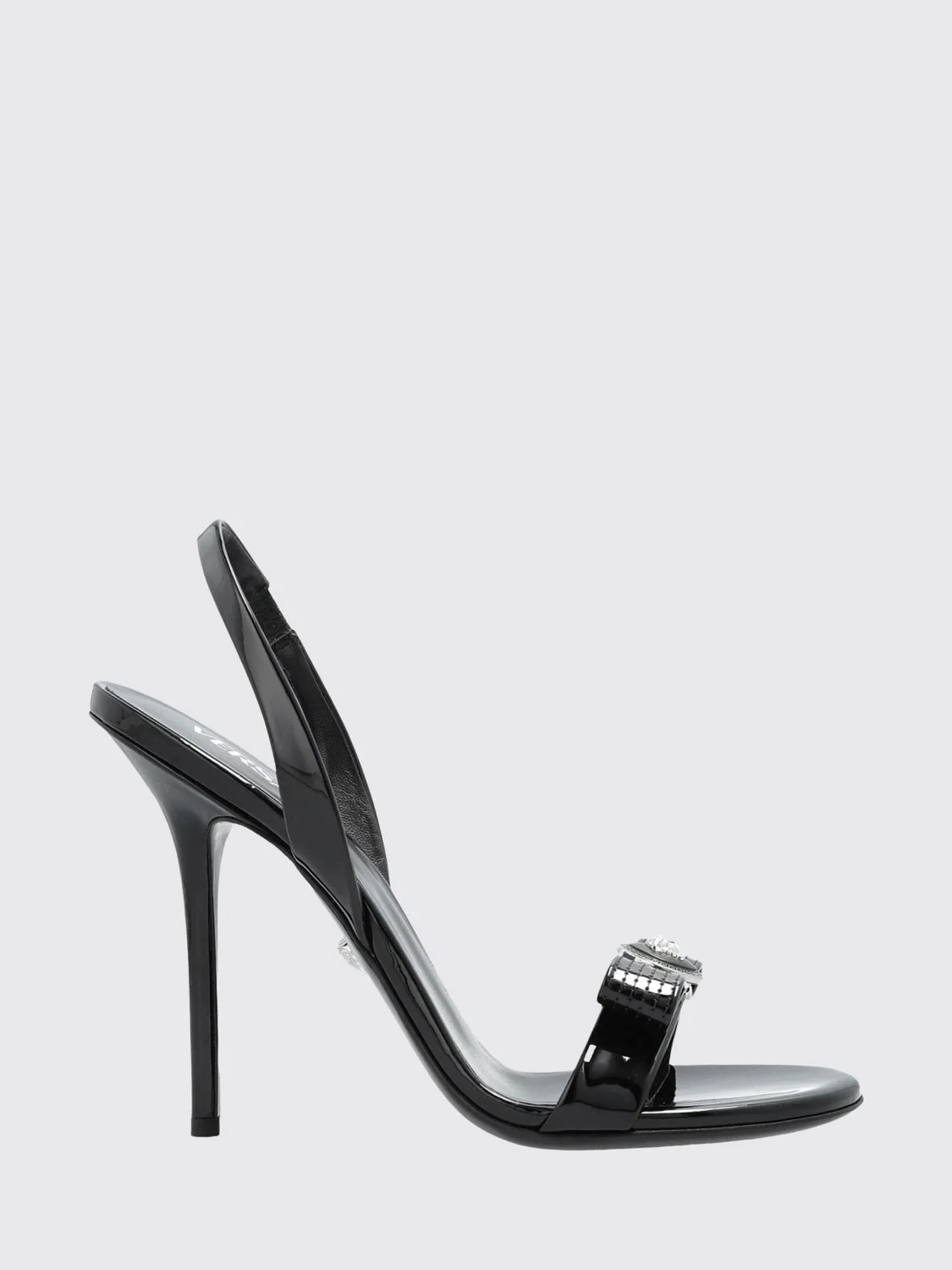 DESCRIPTION - Style: Elegant - Occasion: Evening and party - Details: With bow - Lining: Leather, With logo - Model: Slingback - Toe: Open, Round - Sole: Leather - Logo: Versace Medusa - Heel: With stretch strap , Tacco alto a spillo - Materials: Patent leather - Pattern: Bows, Monogram DETAILS AND CARE Composition 100%VL 100%AOS 100%CPS SIZE AND FIT Sizes Heel: 10,5 cm Designer code: 1022060D2VE 1B00P Giglio Code: I13667 Designer: Versace Collection: Shoes Versace Category: Shoes > Heeled sandal
