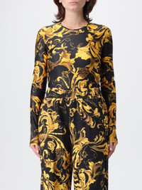 DESCRIPTION - Style: Casual - Neckline: Crewneck - Shoulders: Regular - Closure: With snap buttons on the bottom - Bottom: With straight hemline - Sleeves: Long sleeve tops - Materials: Jersey - Pattern: Baroque Versace DETAILS AND CARE Composition not available SIZE AND FIT Sizes not available Size and fit Slim fit Designer code: 79HAM221JS501 G89 Giglio Code: H36472 Designer: Versace Jeans Couture Collection: Versace Jeans Couture Woman Category: Clothing Versace Jeans Couture
