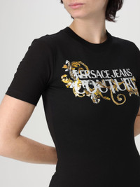 DESCRIPTION - Style: Urban-street - Logo: Contrasting - Neckline: Crewneck - Shoulders: Regular - Bottom: With straight hemline - Length: Mini dresses - Occasion: Morning dresses - Sleeves: undefined - Materials: Stretch cotton - Pattern: Logo DETAILS AND CARE Composition not available SIZE AND FIT Sizes not available Size and fit Slim fit Designer code: 78HAOC06CJ02C G89 Giglio Code: G53316 Designer: Versace Jeans Couture Collection: Versace Jeans Couture Woman Category: Clothing Versace Jeans Couture