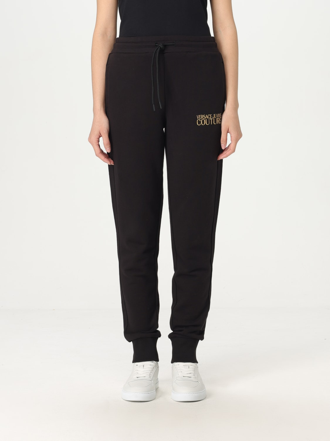 DESCRIPTION - Style: Sporty - Logo: Contrasting - Waist: High waist - Bottom: Stretch - Materials: Stretch cotton - Pattern: Plain-colored DETAILS AND CARE Composition 100% CO SIZE AND FIT Sizes not available Size and fit Regular fit Designer code: 78HAAT06CF01T G89 Giglio Code: G77363 Designer: Versace Jeans Couture Collection: Versace Jeans Couture Woman Category: Clothing Versace Jeans Couture
