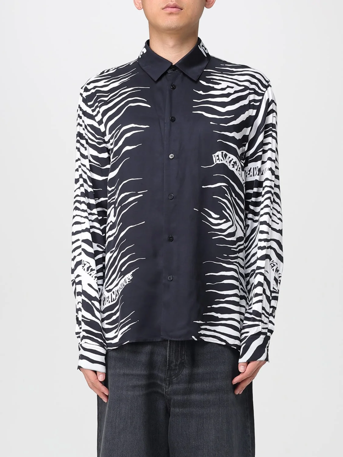 DESCRIPTION - Style: Minimal - Neck: French - Shoulders: Regular - Closure: With buttons - Bottom: With curved hemline - Sleeves: Long sleeve shirts - Materials: Viscose - Pattern: Zebra stripes DETAILS AND CARE Composition 100% VI SIZE AND FIT Sizes not available Size and fit Regular fit Designer code: 78GAL2RZNS619 L01 Giglio Code: G78943 Designer: Versace Jeans Couture Collection: Versace Jeans Couture Men Category: Clothing Versace Jeans Couture
