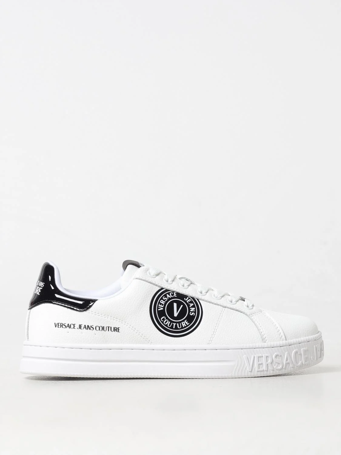 DESCRIPTION - Logo: Print - Lining: Mesh, With logo - Model: Lace up - Toe: Round - Ankle: Low top - Sole: Rubber - Materials: Grained synthetic leather - Pattern: Plain-colored DETAILS AND CARE Composition polyestere 95% polyurethane 5% SIZE AND FIT Sizes not available Designer code: 77YA3SK1ZP332 L02 Giglio Code: G05640 Designer: Versace Jeans Couture Collection: Versace Jeans Couture Men Category: Shoes Versace Jeans Couture