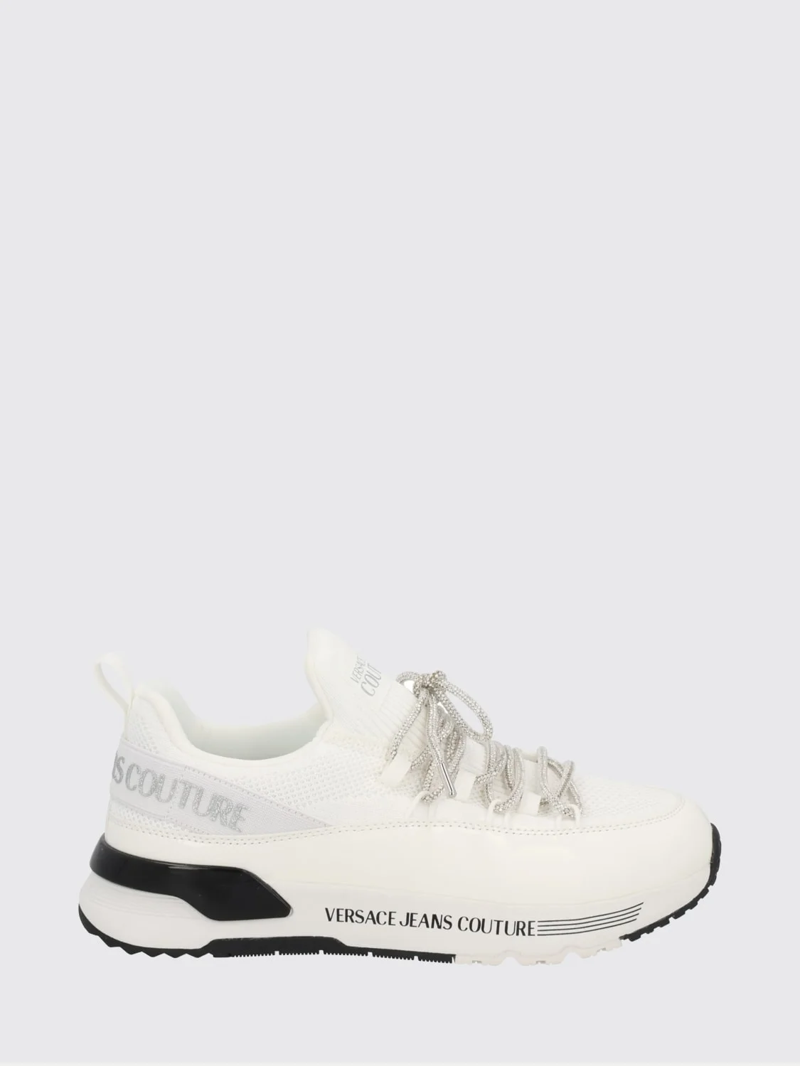 DESCRIPTION - Style: Sporty - Logo: Lettering - Details: With back tab - Lining: Mesh, With logo - Model: Lace up - Toe: Round - Ankle: Low top, Padded - Sole: Dented tread, Rubber - Occasion: Morning - Materials: Mesh , Polyutherane, Rubber - Pattern: Logo DETAILS AND CARE Composition 55% PU, 45% PL SIZE AND FIT Sizes not available Designer code: 79VA3SABZSD00 003 Giglio Code: H77482 Designer: Versace Jeans Couture Collection: Shoes Versace Jeans Couture Category: Shoes > Sneakers